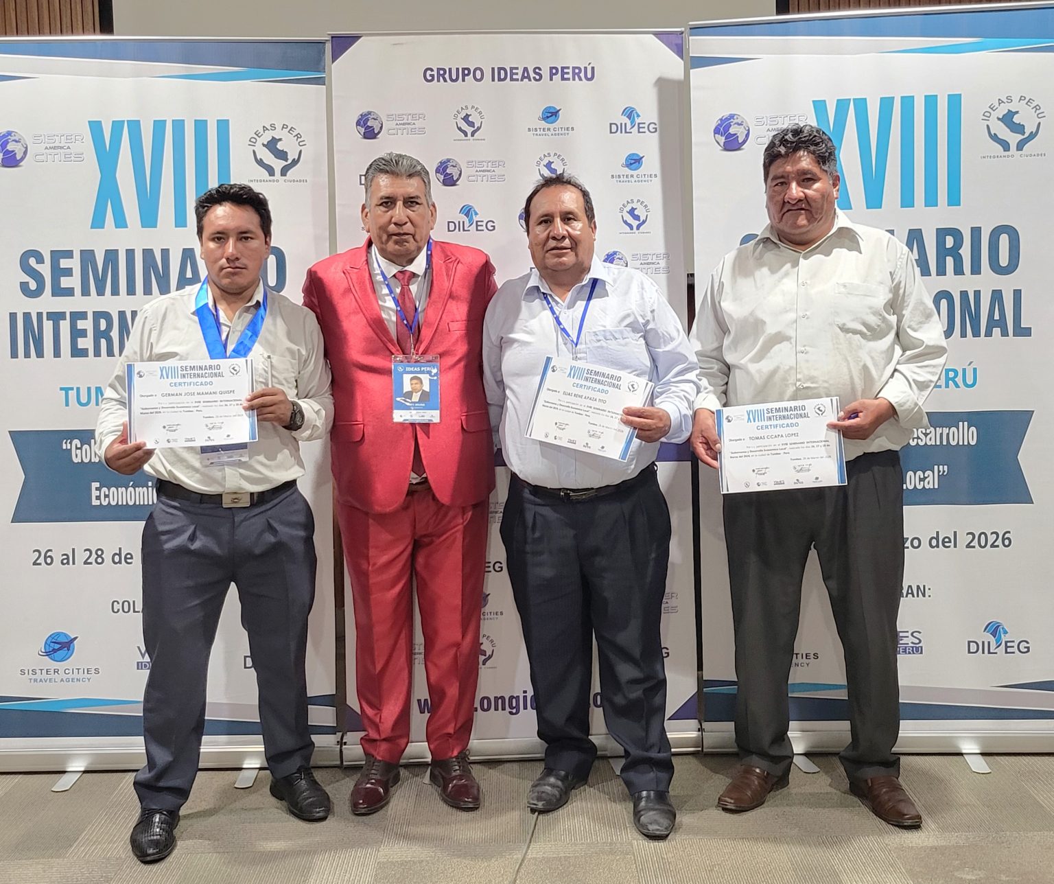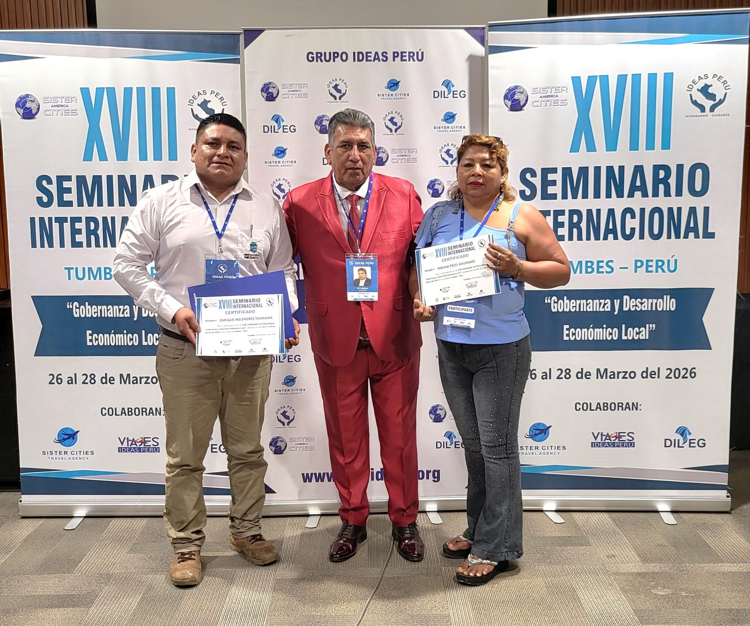 Concluyó con éxito en la ciudad de TUMBES PERÚ, el XVIII SEMINARIO INTERNACIONAL “Gobernanza y Desarrollo Económico Local”. Una vez más la ciudad fronteriza de Tumbes – Perú, fue escenario del XVIII SEMINARIO INTERNACIONAL “Gobernanza y Desarrollo Económico Local”, al que se dieron cita alcaldes, regidores y funcionarios locales de diferentes regiones de nuestro País.